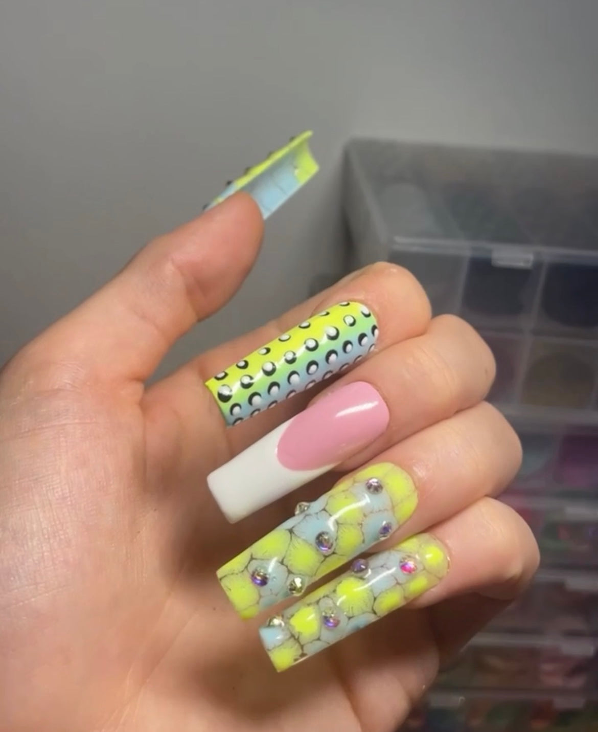 Avec Colle : Faites tremper vos mains dans de l’eau tiède/chaude pendant environ 25 minutes. Décollez doucement l’ongle à l’aide du bâton de buis, ne pas forcez si ça bloque re tremper vos mains pendant 10min.